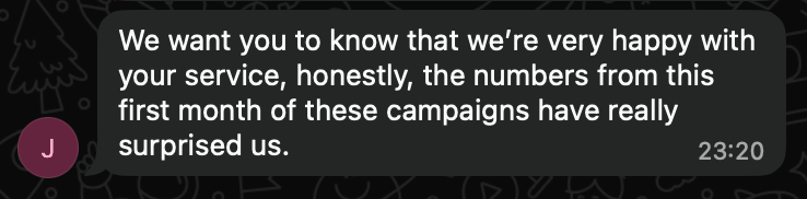 “Very happy with the work he has done for me. I'm pretty sure that I wouldn't have achieved my target revenue this month of November. If you're looking for the right guy to scale your business I would highly recommend him.”