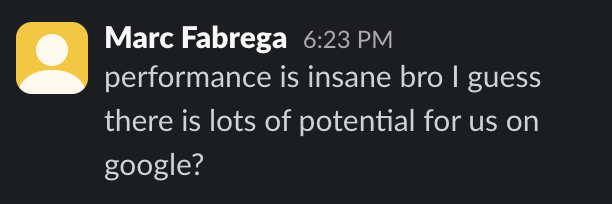 " Google has been a really consistent source of revenue and profit month after month. Spend has been increasing consistently 5 to 10% week after week for six months.